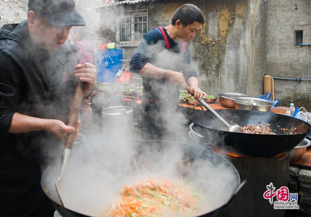 四川宜賓市三江新區(qū)沙坪街道解臺(tái)村舉行刨湯文化節(jié)。何毅攝影