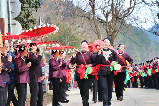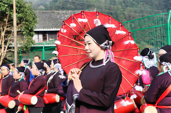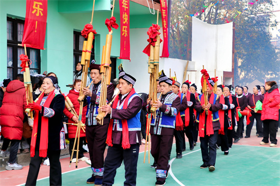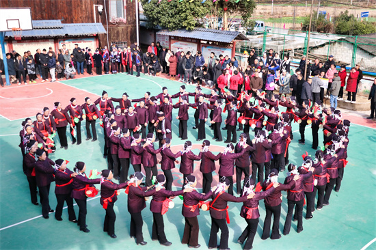 “多嘎多耶”是侗族的傳統(tǒng)歌舞形式之一,在此次活動中也得到了精彩的呈現(xiàn)。村民們手拉手圍成圈,邊唱邊跳,他們的歌聲和舞姿仿佛能驅散冬日的嚴寒,帶來春天的溫暖。琵琶村的村民們更是用他們的琵琶彈唱為活動增添了濃厚的藝術氛圍。那美妙的旋律仿佛能穿透心靈,讓人沉醉其中。