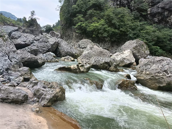 沿著蜿蜒的小道緩慢前行,約2公里的河道如一條靈動(dòng)的藍(lán)色綢帶,于峽谷間蜿蜒盤(pán)繞。河水清澈見(jiàn)底,簡(jiǎn)直就是一面澄澈的明鏡,水底的沙石粒粒分明,五彩斑斕的鵝卵石宛如散落在人間的寶石,閃爍著迷人光澤。靈動(dòng)的小魚(yú)穿梭于水草之間,時(shí)而歡快地躍出水面,時(shí)而敏捷地隱匿身形,為這清幽的畫(huà)面增添了幾分活潑與生機(jī)。陽(yáng)光傾灑,河面波光粼粼,似無(wú)數(shù)細(xì)碎的鉆石在水面跳躍閃爍,璀璨奪目。