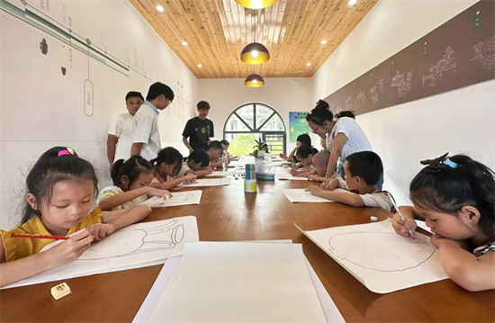 8月15日,一場(chǎng)“看見(jiàn)皇田,遇見(jiàn)衡州窯”美育活動(dòng)在皇田村衡州窯文化體驗(yàn)中心拉開(kāi)帷幕。南華大學(xué)松霖建筑與設(shè)計(jì)藝術(shù)學(xué)院的大學(xué)生志愿者引導(dǎo)孩子們觸摸陶片、認(rèn)識(shí)器型,并以傳統(tǒng)陶器為畫(huà)布,用五彩畫(huà)筆描繪家鄉(xiāng)山水、田園風(fēng)貌與生活場(chǎng)景,為衡州窯文化延伸生命活力。