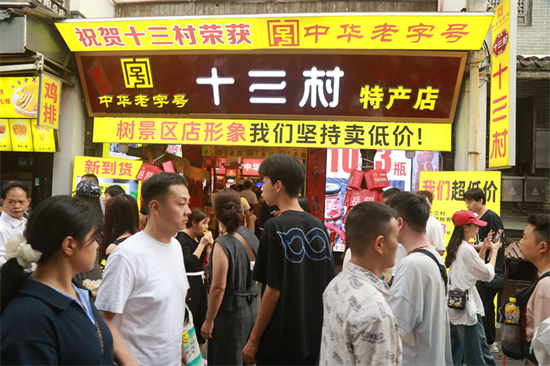 該店推出讓利給顧客、免費(fèi)郵寄等活動(dòng),吸引全國各地球迷和游客絡(luò)繹不絕。他們現(xiàn)場品嘗試吃產(chǎn)品,談笑風(fēng)生;或拍照打卡、分享快樂。洋溢著輕松、歡快的假日氣息,收銀臺(tái)前,等待結(jié)賬的隊(duì)伍常常排起長龍,展現(xiàn)了中華老字號(hào)的獨(dú)特魅力與巨大潛力。