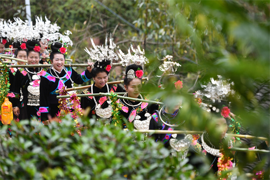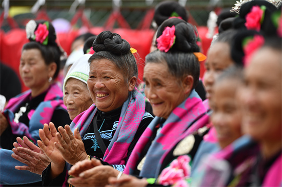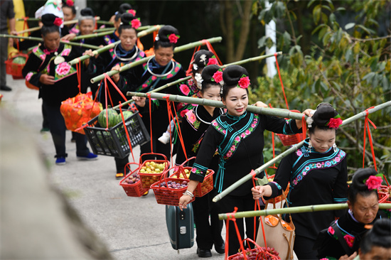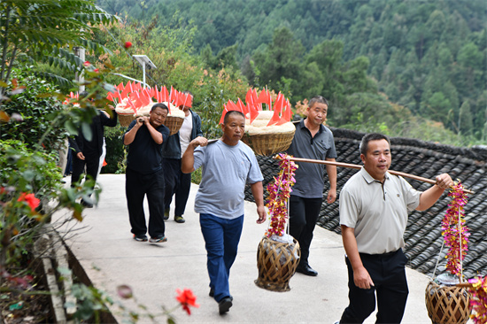 10月2日,貴州省凱里市鴨塘街道馬安村,姑爹們?nèi)⒓优J赫驁鲂蘅樋⒐c典。(楊仁海 攝)
