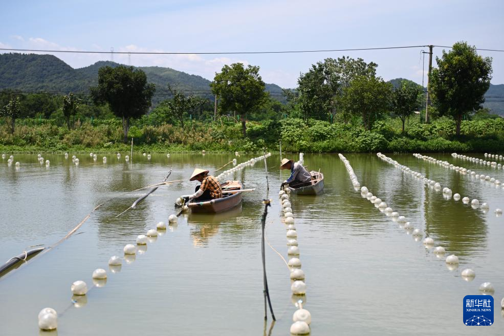 8月9日,工作人員在浙江省諸暨市山下湖鎮(zhèn)的珍珠智能化養(yǎng)殖基地放蚌。