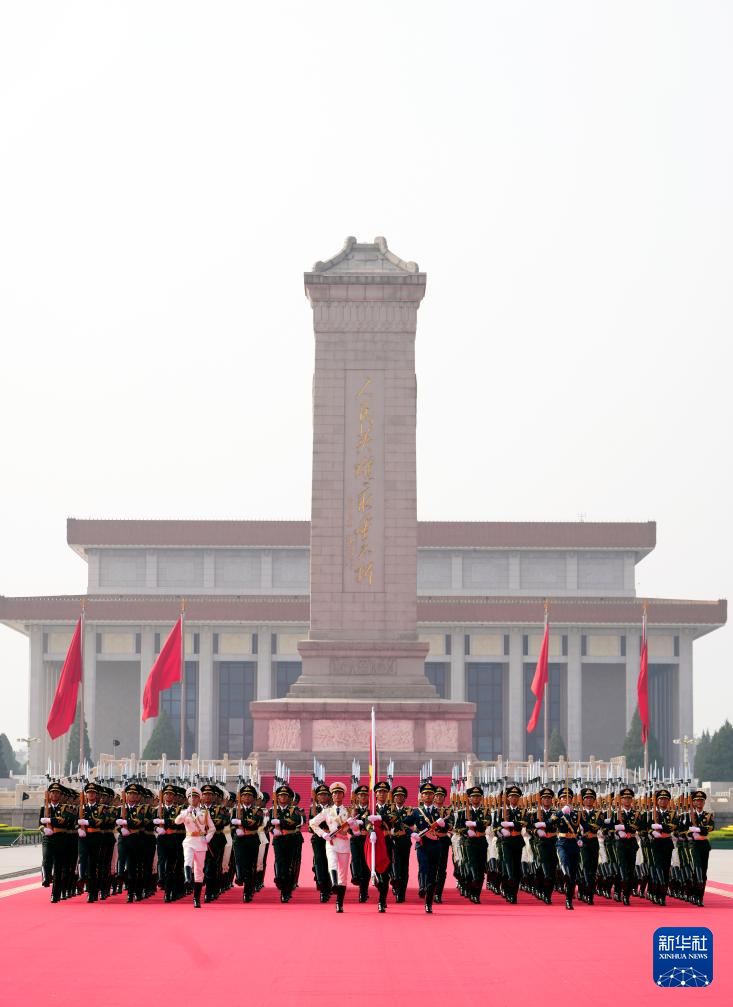 9月3日,紀念中國人民抗日戰(zhàn)爭暨世界反法西斯戰(zhàn)爭勝利80周年大會在北京天安門廣場隆重舉行。這是國旗護衛(wèi)隊從人民英雄紀念碑基座出發(fā),走向旗桿基座。