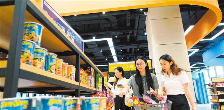 10月10日,消費(fèi)者在沙坪壩的陸海新通道重慶無水港線下展示展銷中心選購商品。西部陸海新通道持續(xù)帶動(dòng)沿線優(yōu)質(zhì)商品交流互通,服務(wù)國內(nèi)商品“走出去”和國外商品“引進(jìn)來”。