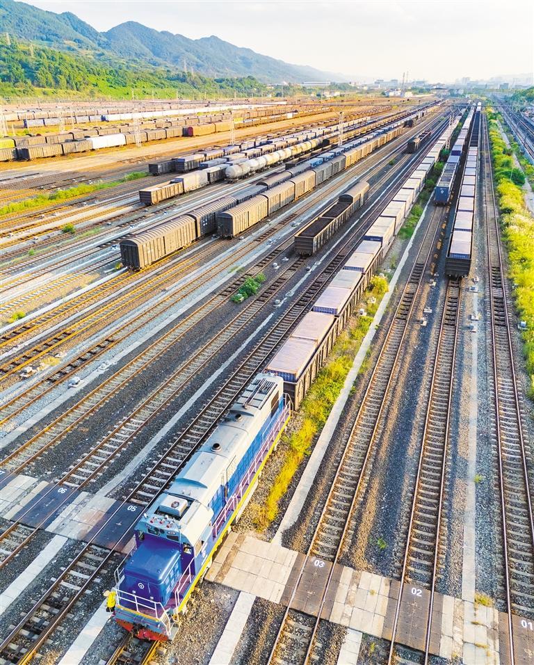 10月10日,興隆場編組站,一列國際班列緩緩駛出。截至目前,沙坪壩區(qū)已開通63條國際線路,串聯(lián)歐洲、中亞至東盟地區(qū),同時(shí)通過鐵海聯(lián)運(yùn)接駁澳新、非洲、美洲地區(qū)。