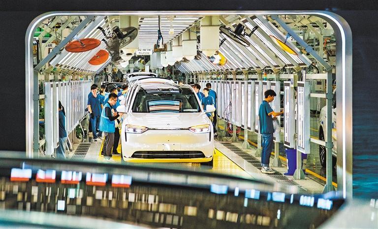 10月10日,位于沙坪壩的賽力斯超級(jí)工廠(鳳凰),新能源車下線前接受檢測。近年來,重慶鐵路口岸“渝車出海”蔚然成風(fēng)。